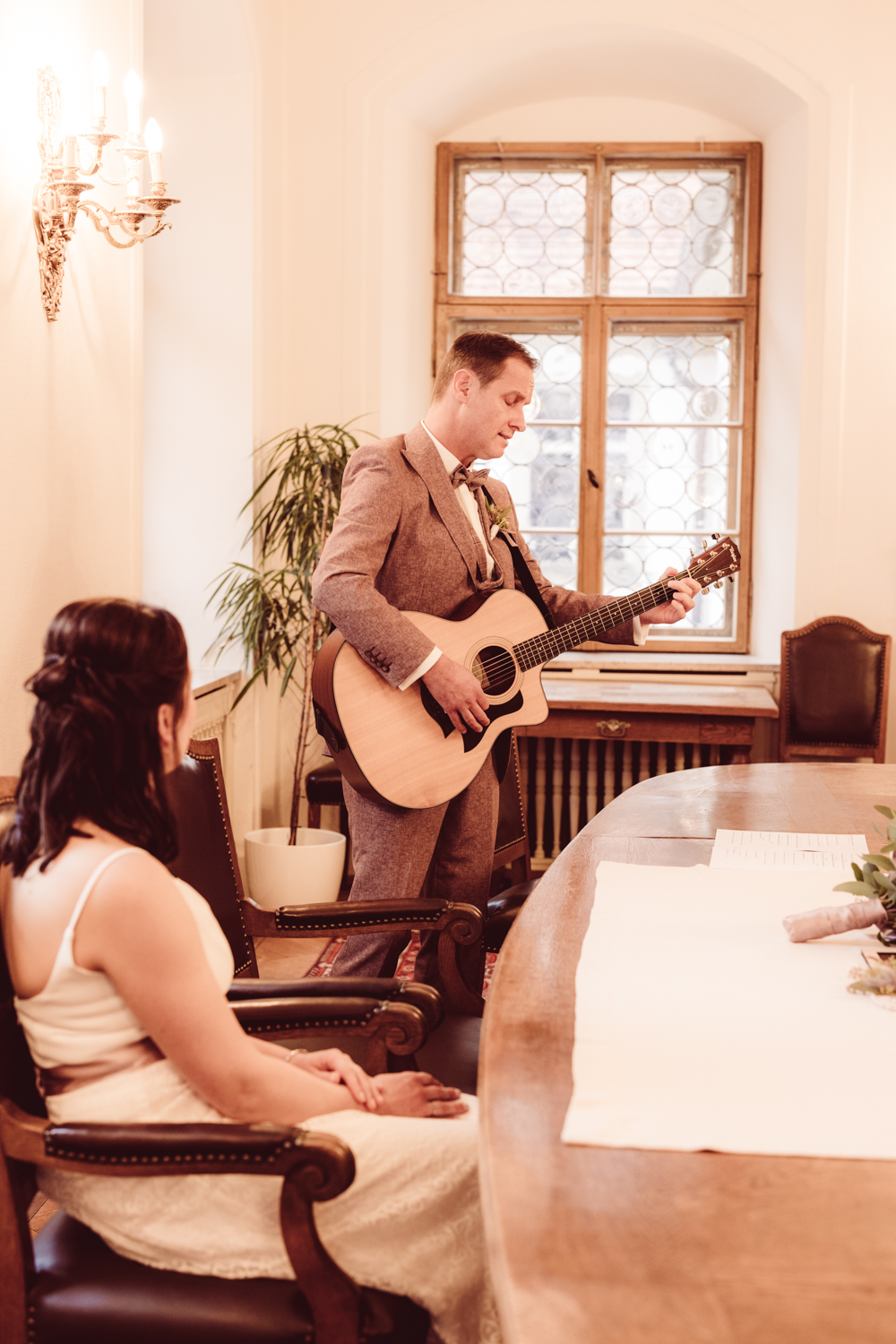 Der Bräutigam hat seiner Braut zwei Lieder vorgesungen – begleitet von seiner akustischen Gitarre.