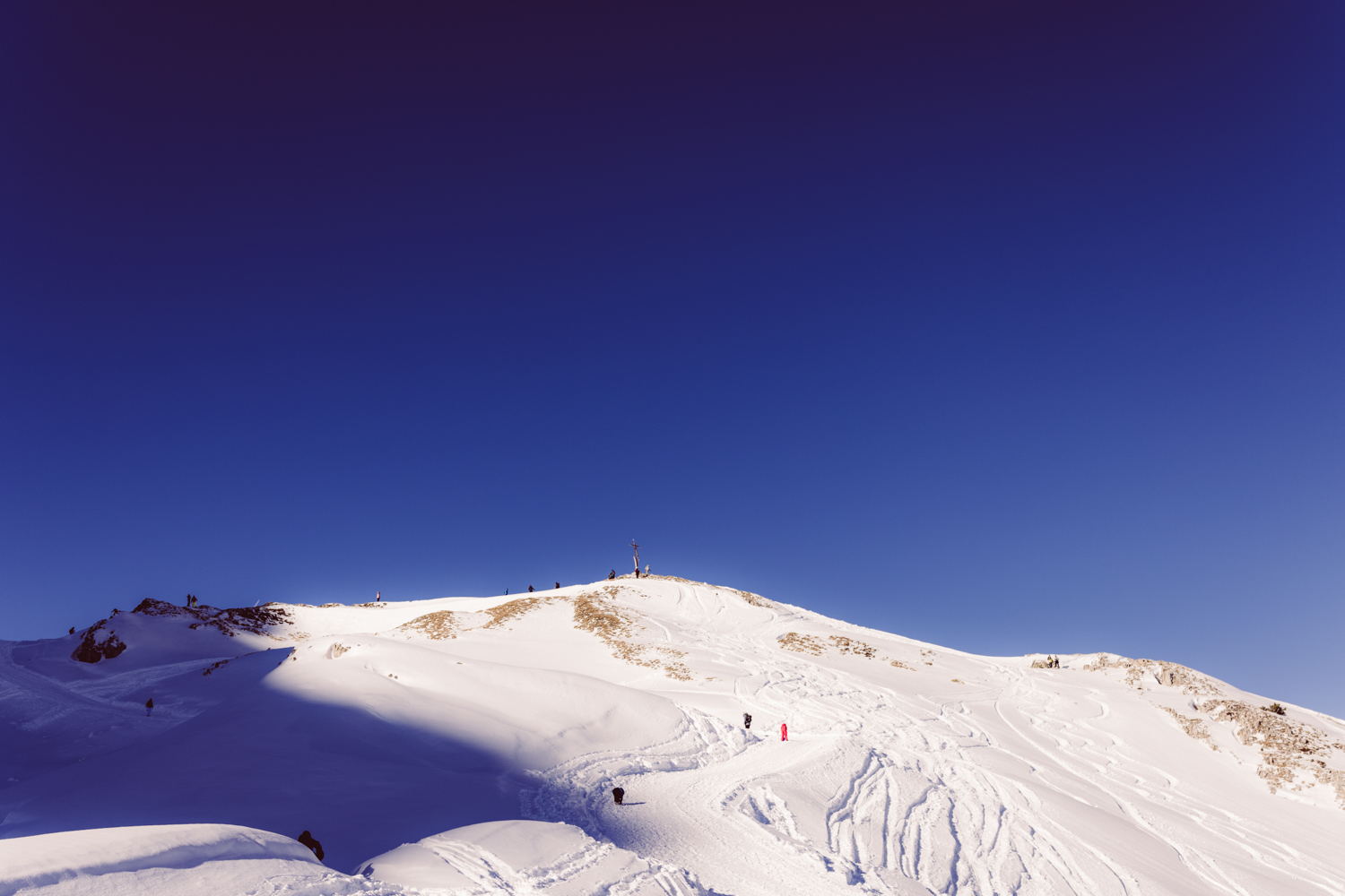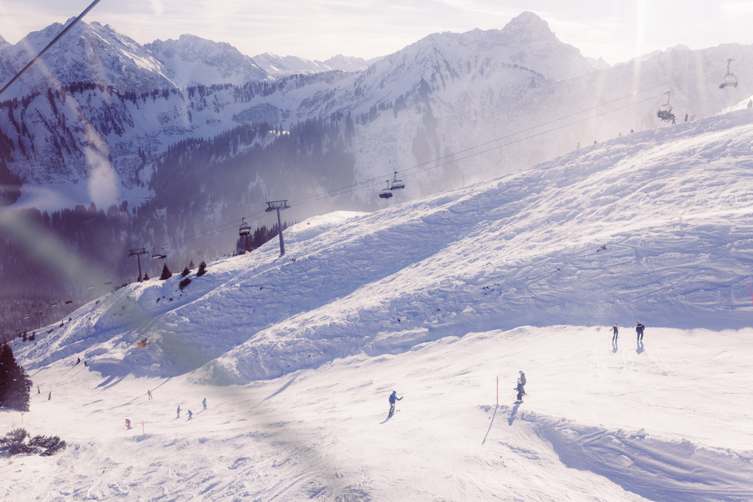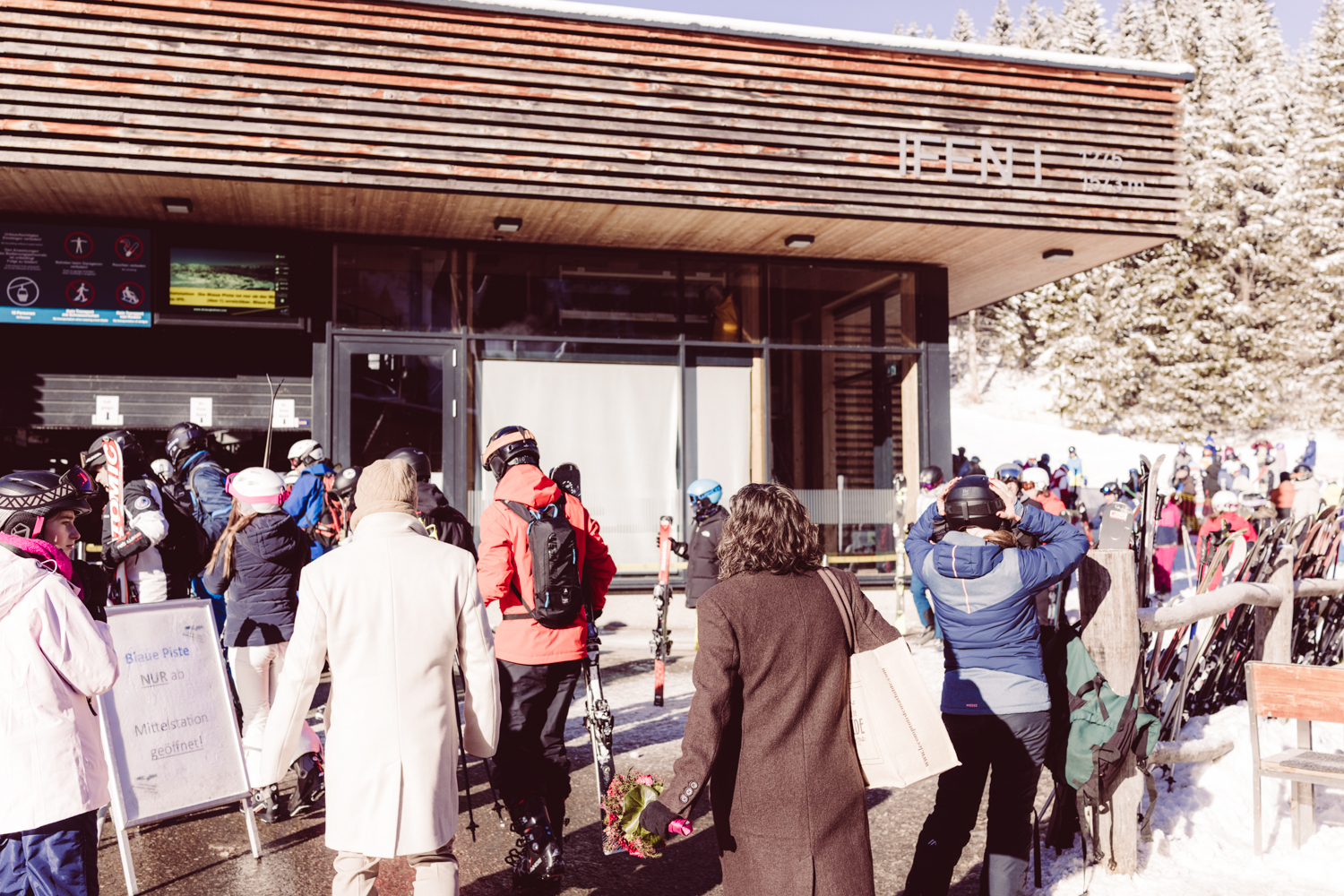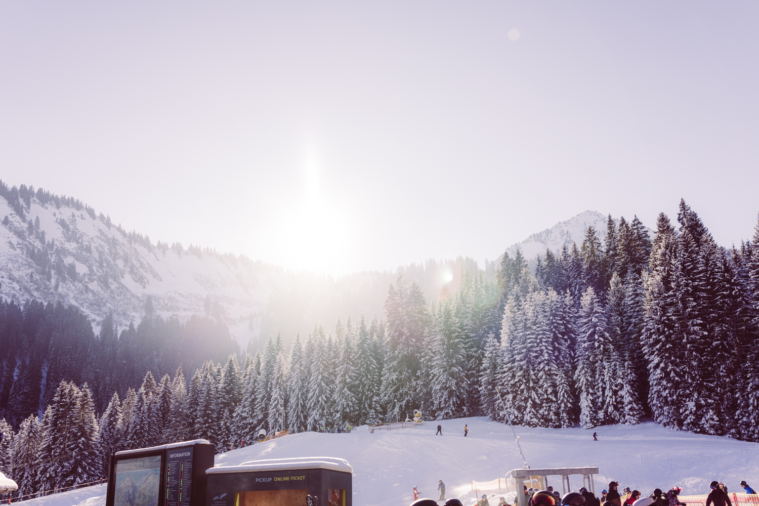 Anschließend geht es weiter zum Parkplatz der Ifenbahn. Es ist viel los: Ferienzeit, Brückentag, perfektes Winterwetter. Rodler, Skifahrer, Snowboarder und Wanderer nutzen den Tag.