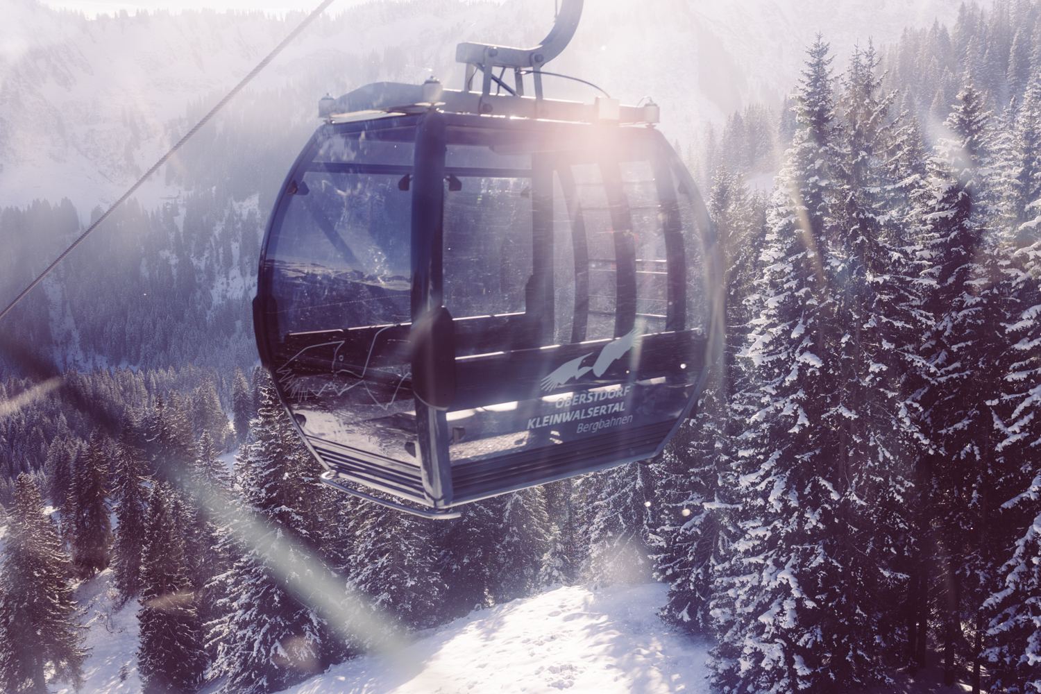 Wir fahren mit der Gondel bis ganz nach oben.