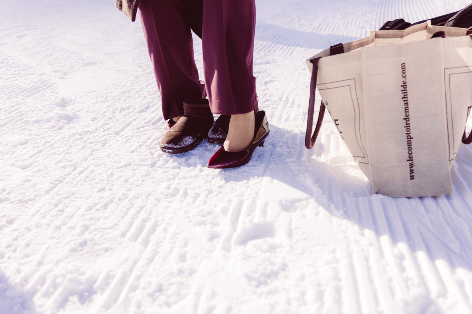 Wir starten mit ersten Portraits in der warmen Wintersonne, die über die Felsen des Gottesackerplateaus scheint.