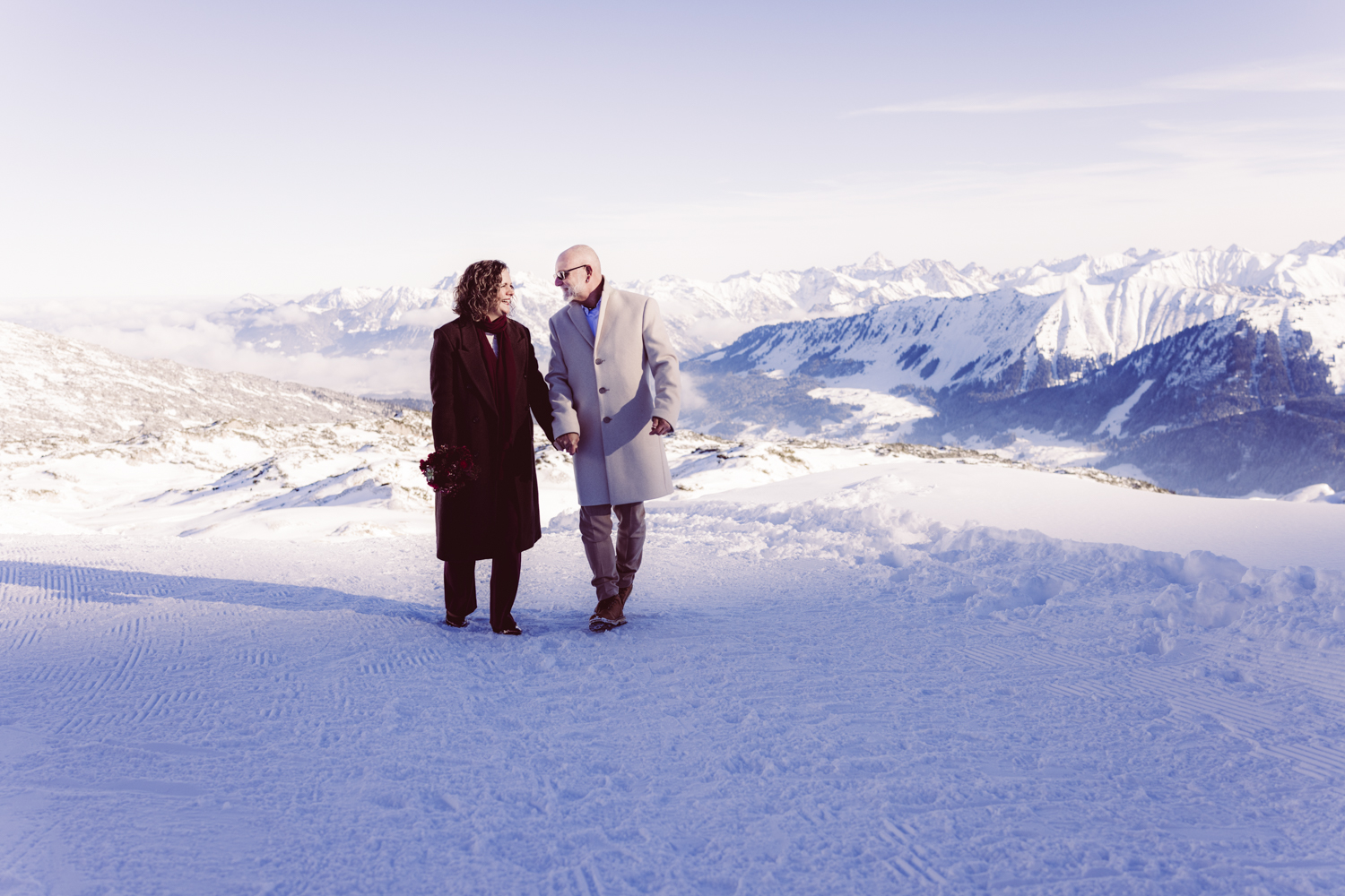 Standesamtliche Trauung im winterlichen Mittelberg, im Kleinwalsertal