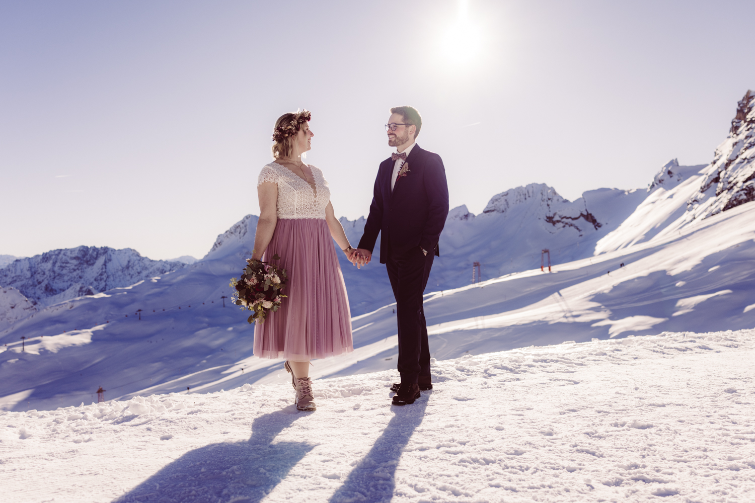 So geht es auf den Gipfel und dann mit der Gletscherbahn ins Skigebiet und zum Standesamt. Immer wieder eine besondere und abenteuerliche Anreise für eine Hochzeit.